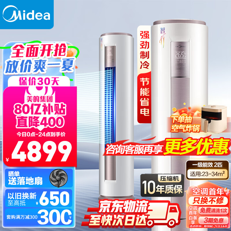 美的(Midea)智行三代自清洁一级能效2匹空调变频柜机立式客厅冷暖两用制冷制热大出风口空调家电以旧换新YH200价格:4699.00元!