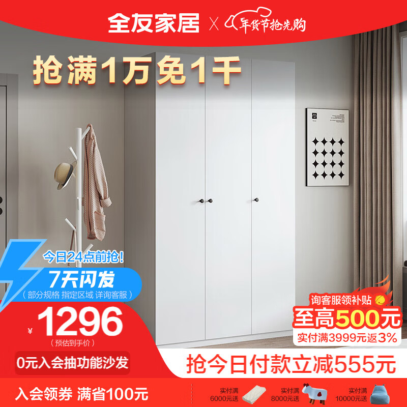 全友家居 衣柜简约风卧室衣物收纳纯色百搭多规格平开门家具DG10009价格:1847.10元!