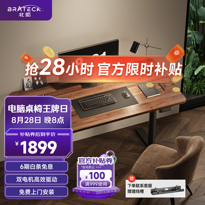 Brateck双电机电动升降电脑桌 北弧站立办公升降书桌 升降台 M1棕1.5米价格:1999.00元!