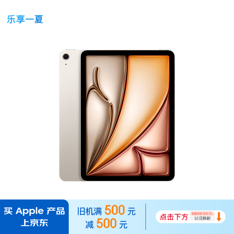 Apple/苹果 iPad Air 11英寸 M2芯片 2024年新款平板电脑(Air6/512G WLAN版/MUWN3CH/A)星光色价格:7299.00元!