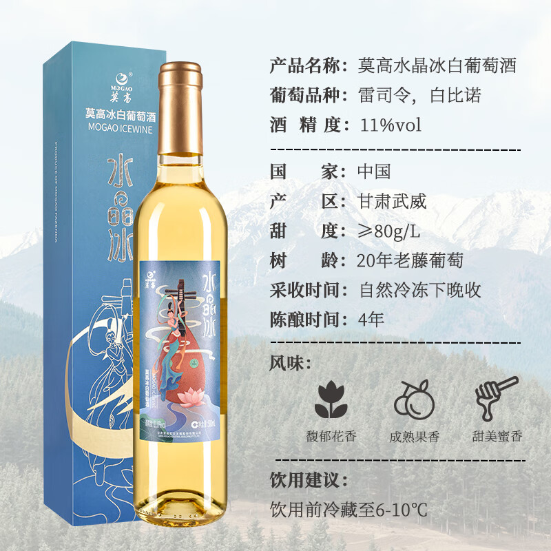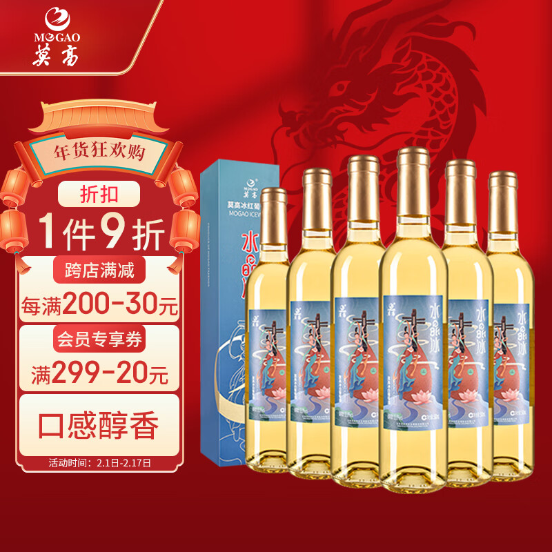 莫高(MOGAO)冰白葡萄酒红酒 甜果冰酒 水晶 500ml*6整箱装年货送礼价格:499.00元!