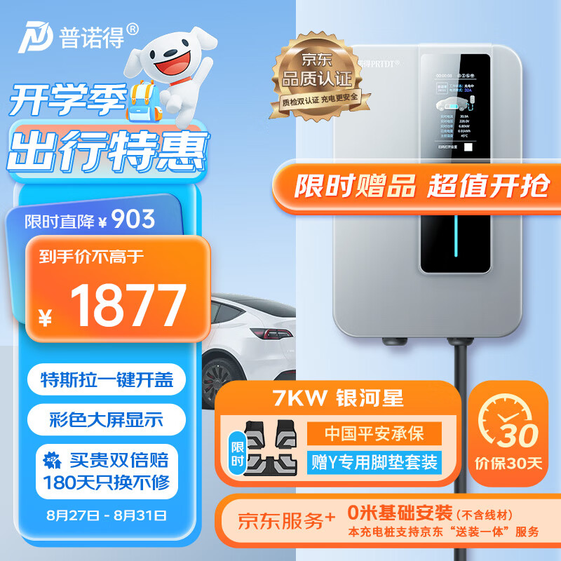 普诺得银河星 充电桩 新能源7KW家用 适配于特斯拉问界极氪001小米汽车su7充电枪 送装一体含基础安装价格:2346.20元!