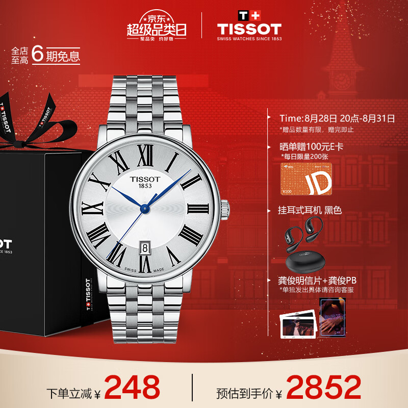 5、想买个手表送老公很久了,刚好看到天梭做活动,也适合他就买了。送给老公十周年纪念日的礼物,他特别喜欢。哈哈哈~