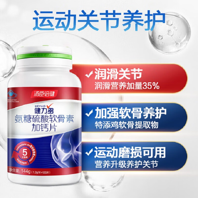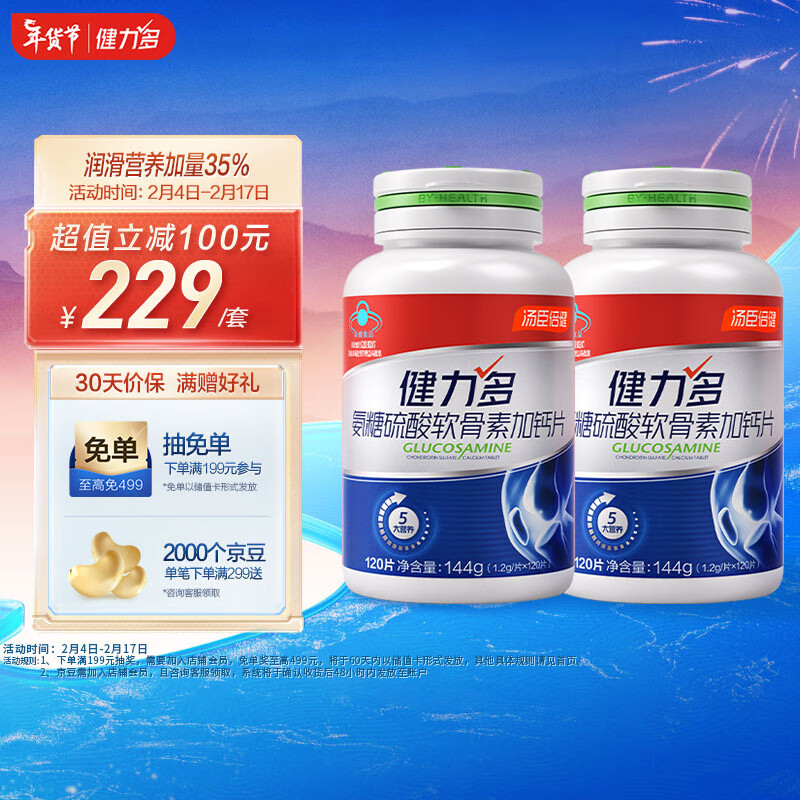 健力多 汤臣倍健氨糖 软骨素钙片 中老年成人运动氨糖润滑关节 氨基硫酸软骨素氨糖 软骨素加量35% 120粒*2价格:229.00元!