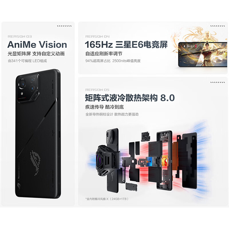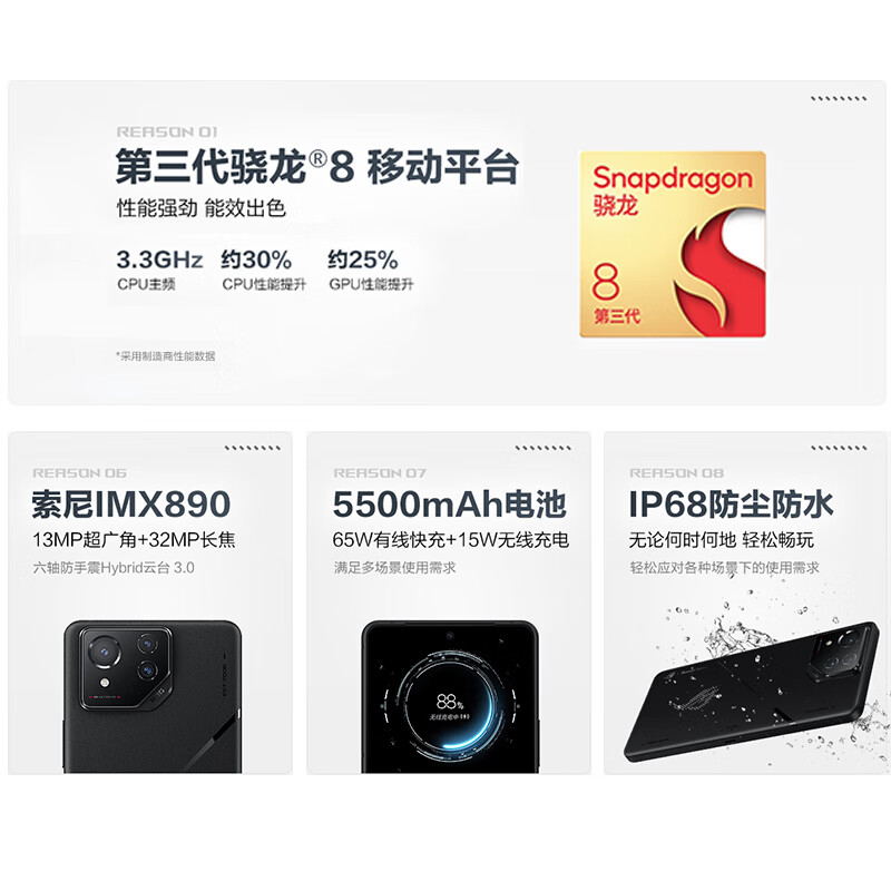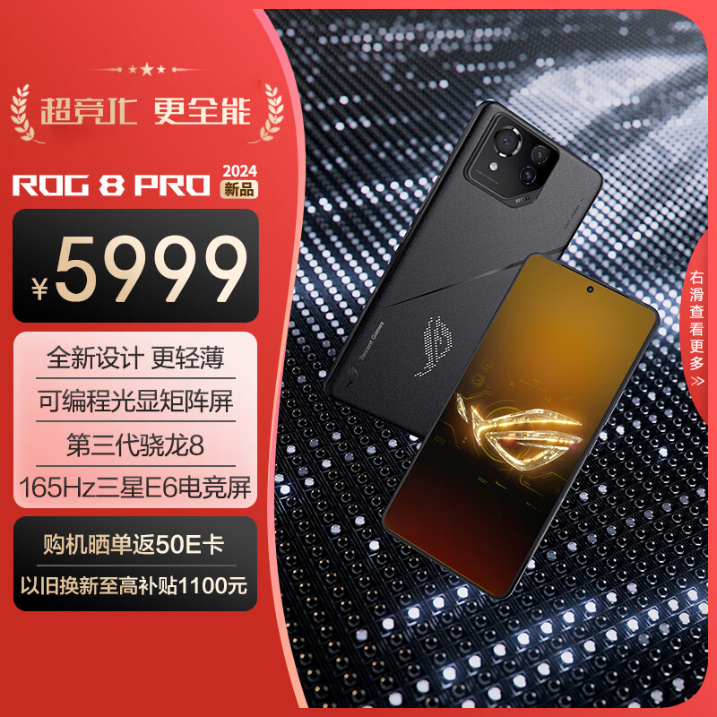 ROG8 Pro AI游戏手机 16+512 曜石黑 骁龙8Gen3 矩阵式液冷散热8.0 三星电竞屏 165Hz高刷 5G价格:5999.00元!