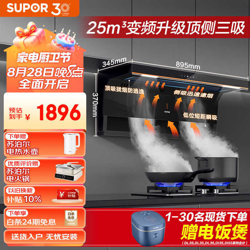 苏泊尔(SUPOR)抽油烟机 双腔拢烟顶侧双吸油烟机 家用抽烟机25立方变频大吸力挥手智控免拆洗吸油烟机DL35价格:1896.00元!