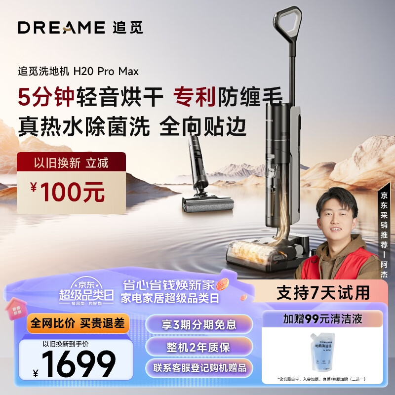 追觅H20 PRO MAX无线智能高温热水洗地机吸拖扫一体热风速干家用大吸力吸尘器升级款价格:3299.00元!