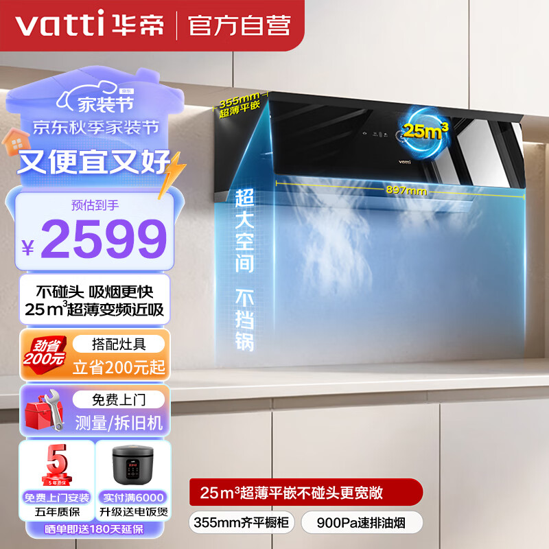 华帝(VATTI)抽油烟机新侧吸式家用超薄变频吸油烟机顶侧一体25立方大吸力 挥手智控自动清洗 以旧换新i111A2价格:2799.00元!