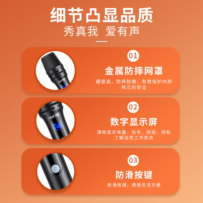 先科 ok-98充电无线麦克风U段家庭KTV唱歌舞台主持演讲K歌会议音箱音响功放调频一拖二金属话筒价格:499.00元!