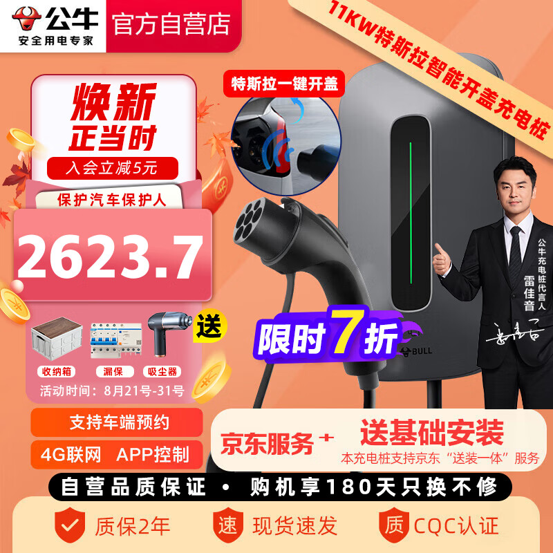 公牛(BULL)新能源汽车交流充电桩适配于特斯拉全系小米su7汽车等 11KW4G款 送基础安装价格:3749.00元!