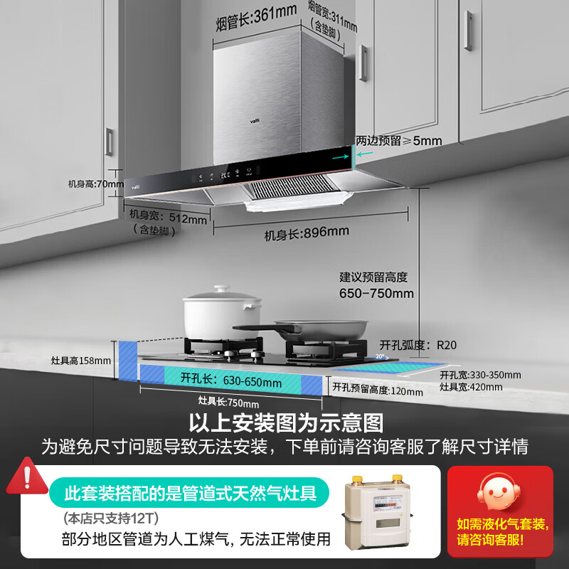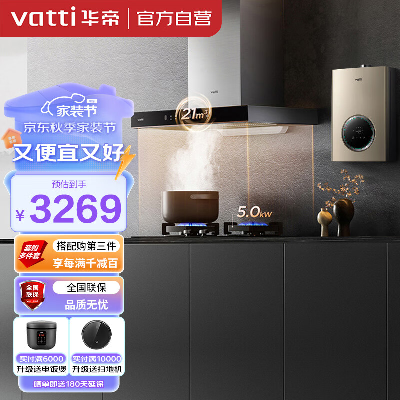 华帝(VATTI)抽油烟机 欧式顶吸燃气灶具热水器套装 家用厨房三件套 挥手智控i11176+72B+104-12(天然气)价格:3269.00元!