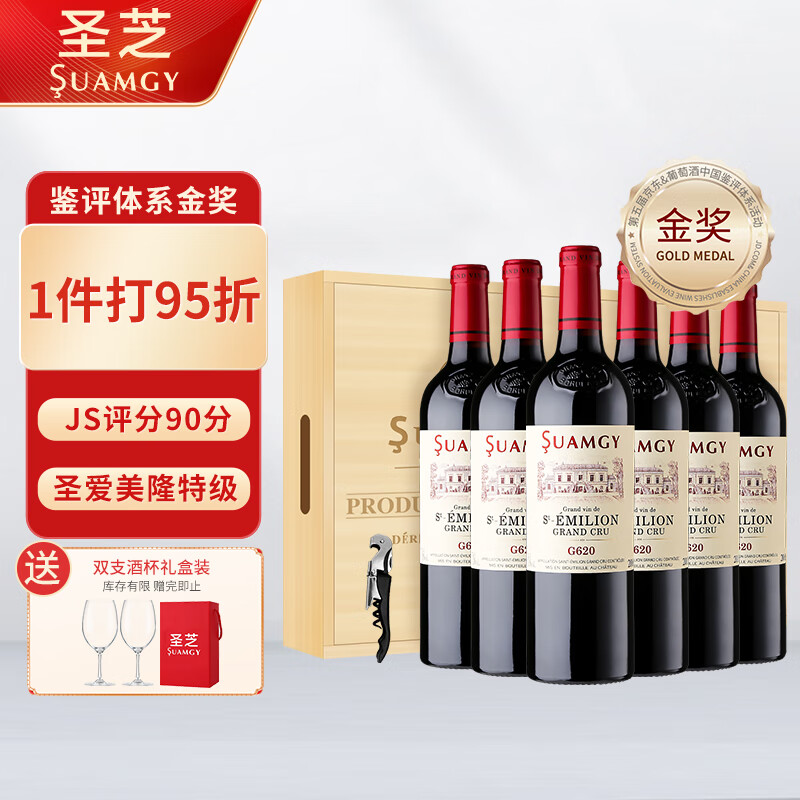 圣芝(Suamgy)G620圣爱美隆AOC干红葡萄酒 750ml*6瓶 整箱木箱装 法国进口红酒价格:2199.00元!
