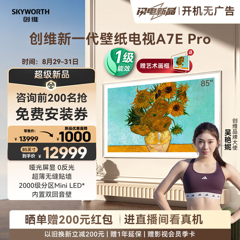创维壁纸电视85A7E Pro 85英寸 超薄壁画 mini led 艺术电视机80-100寸 家电北京以旧换新一级能效价格:13999.00元!