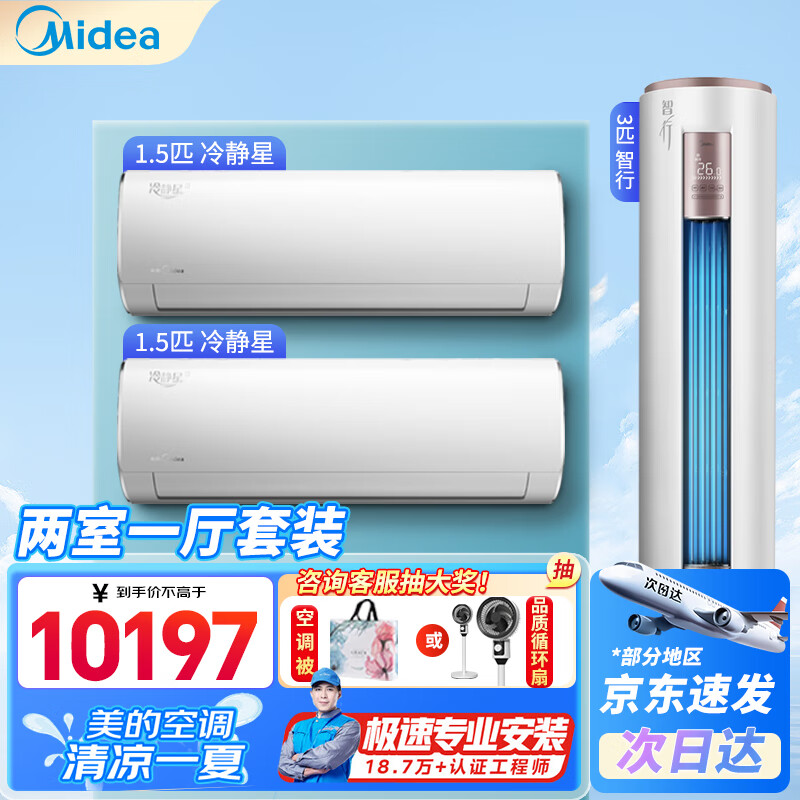 美的(Midea)空调套装两室一厅套餐 3匹智行+冷静星/酷省电/风酷/极酷 新一级能效变频挂机柜机价格:10147.00元!