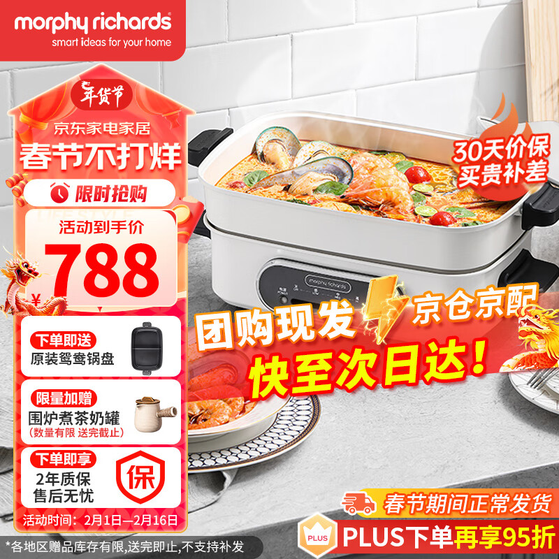 摩飞电器(Morphyrichards)多功能锅 家用多用途锅 电火锅电煮锅电蒸锅电热锅 2.5升 火锅锅 MR9088 富士白价格:788.00元!