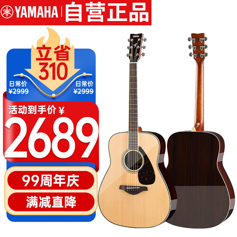 雅马哈(YAMAHA)FG830 原声款 实木单板 初学者民谣吉他41英寸吉它亮光原木色价格:2999.00元!