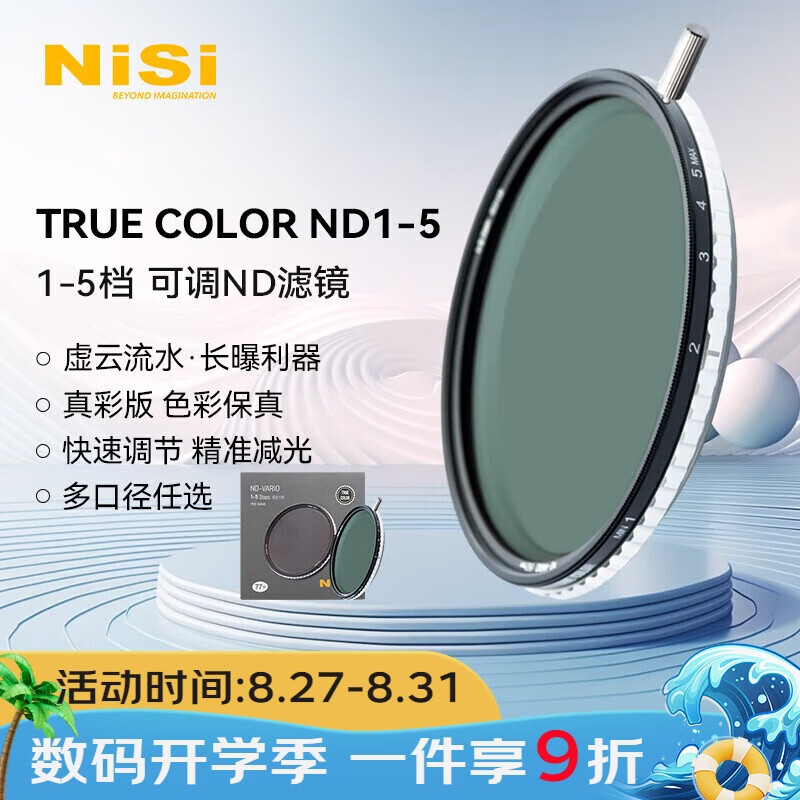 耐司(NiSi)可调nd滤镜 True Color VND1-5档49mm可变nd减光镜真色彩 色彩保真可调ND镜 单反微单相机视频人像价格:528.00元!
