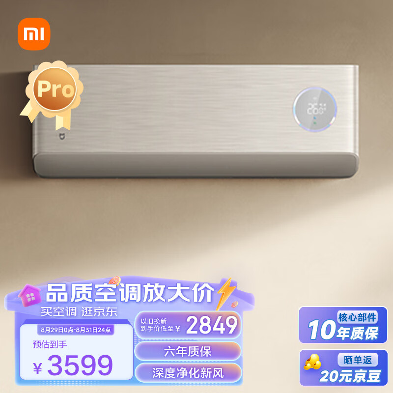 小米1.5匹 新风空调Pro 超一级能效 变频冷暖 60m3/h大新风量 空调挂机 KFR-35GW/F5A1【2024新款】价格:3599.00元!