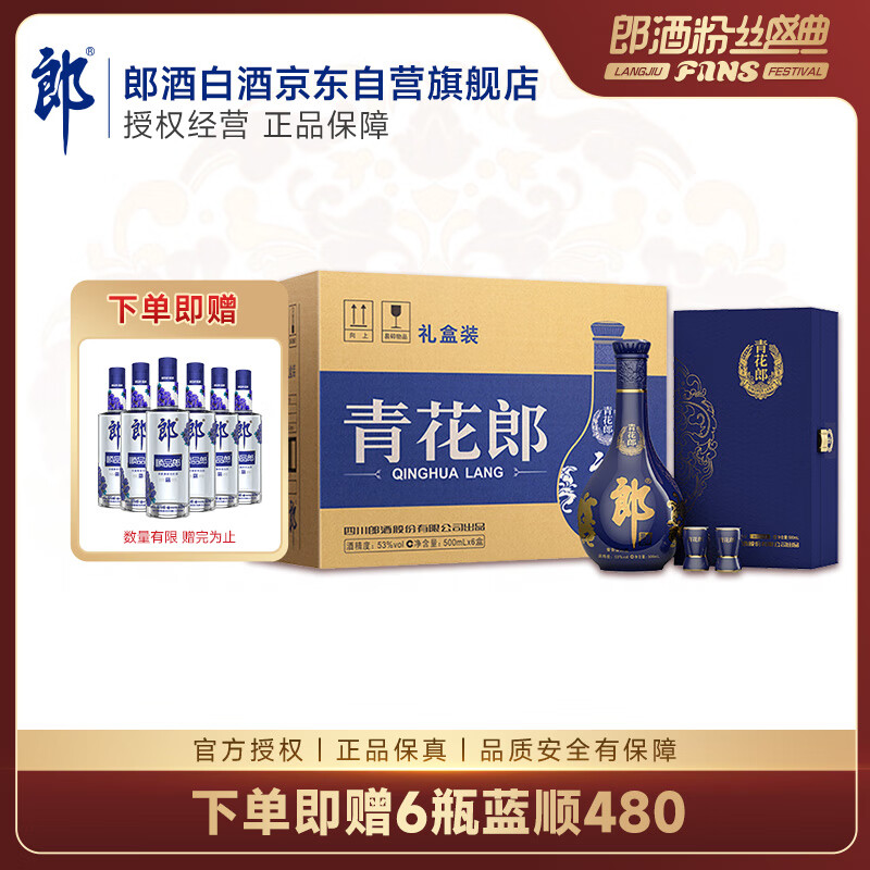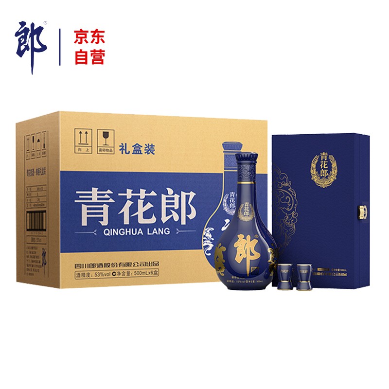 郎酒 青花郎 酱香型 白酒 53度 500ml*6瓶 尊享版整箱装【中秋礼品】价格:6814.00元!