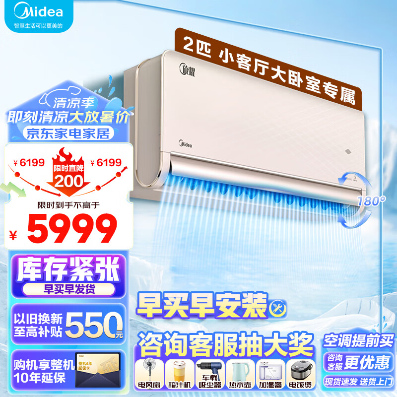 美的(Midea)空调 2匹旋耀 壁挂式空调 大风量客厅商铺挂机 一级能效空调 KFR-50GW/N8MXA1价格:5999.00元!