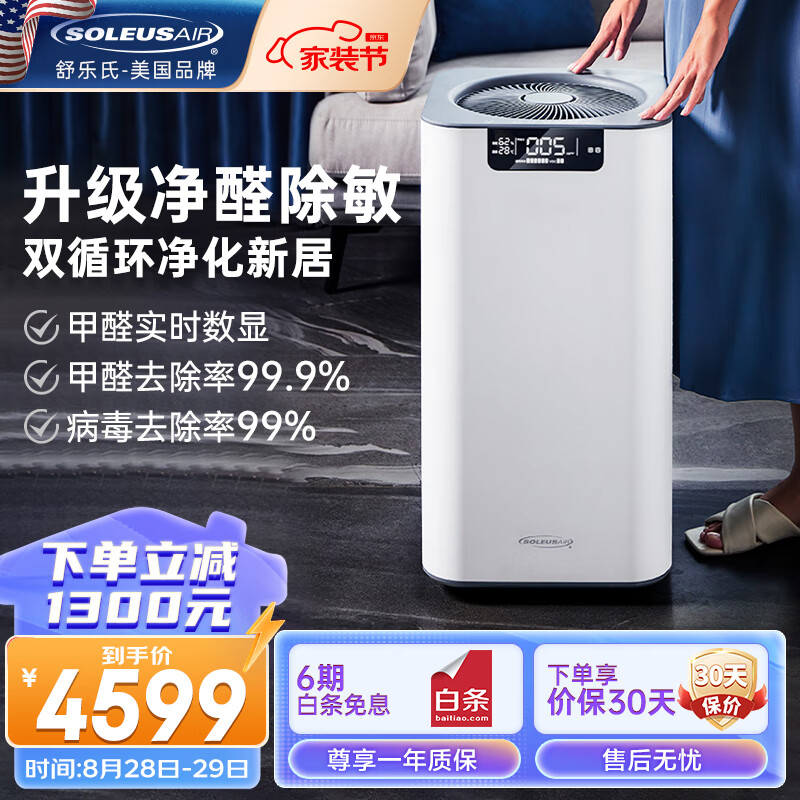 SOLEUSAIR舒乐氏空气净化器宠物除菌猫毛家用吸附除甲醛除花粉过敏原异味除甲醛分解除雾霾 等离子除菌A02价格:4599.00元!