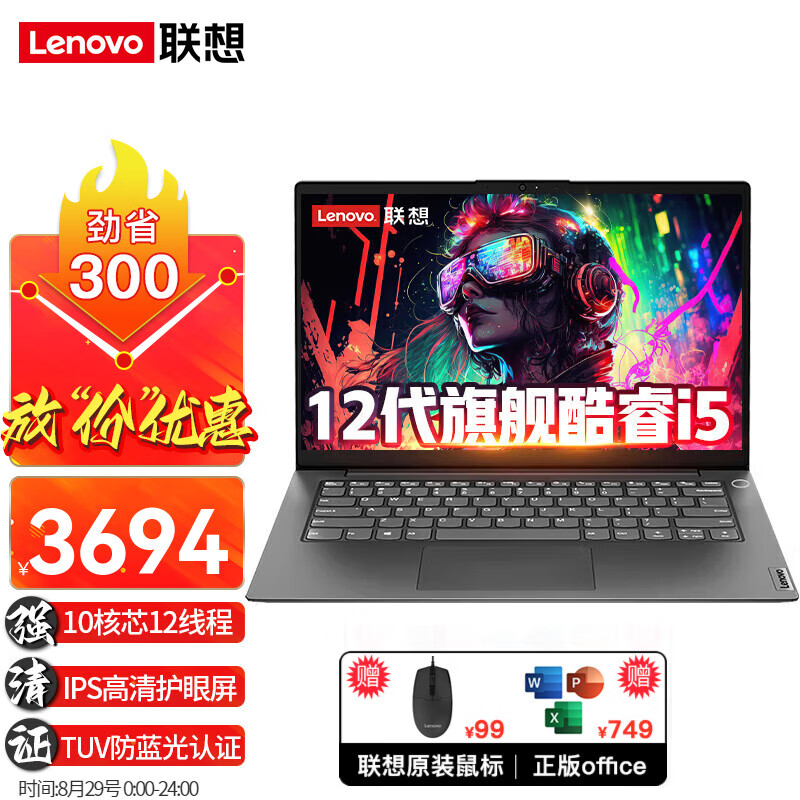 联想笔记本电脑高性能12代酷睿i5超轻薄本v14英寸Air学生商用办公设计游戏本手提本 十核芯 i5-1235U 16G内存+512G固态 游戏级锐炬Xe显卡 IPS全高清屏 精装升级价格:3994.00元!