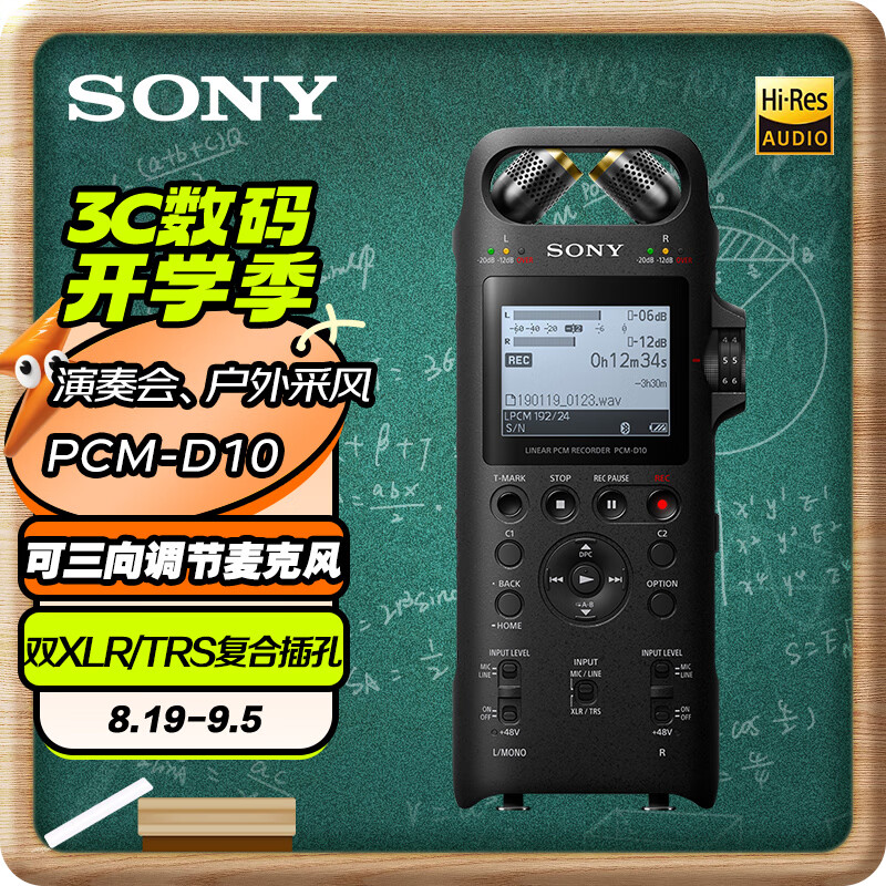 索尼(SONY)专业数码录音笔PCM-D10 16GB 黑色 数字降噪Hifi无损播放 大直径三向双麦克风价格:2799.00元!
