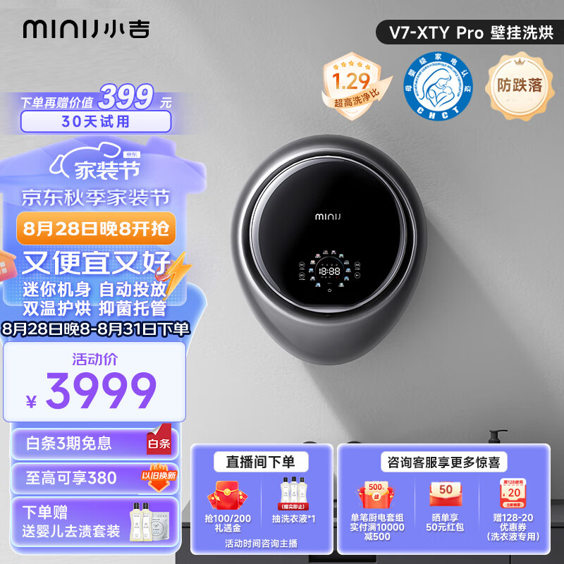 小吉(MINIJ)智控壁挂洗烘一体洗衣机 APP操控全自动智能变频 1kg迷你母婴洗衣机 小水滴 V7-XTY pro价格:3999.00元!