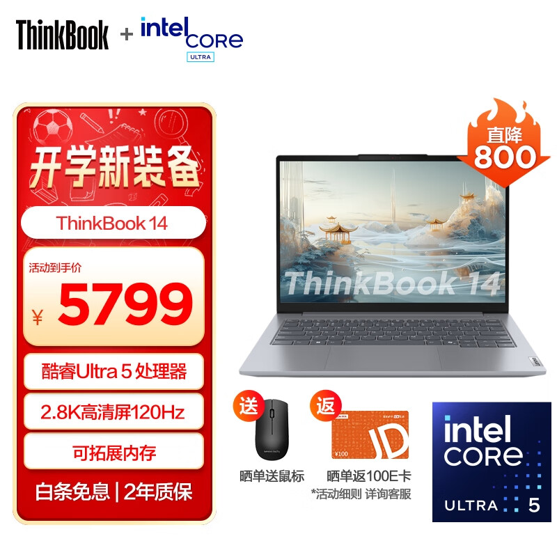ThinkPad 联想ThinkBook 14/16 2024全新英特尔酷睿Ultra处理器 学生办公轻薄笔记本电脑 120Hz刷新率 14英寸 Ultra5 32G 1TB 90CD价格:5799.00元!
