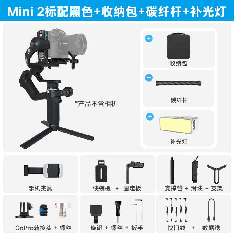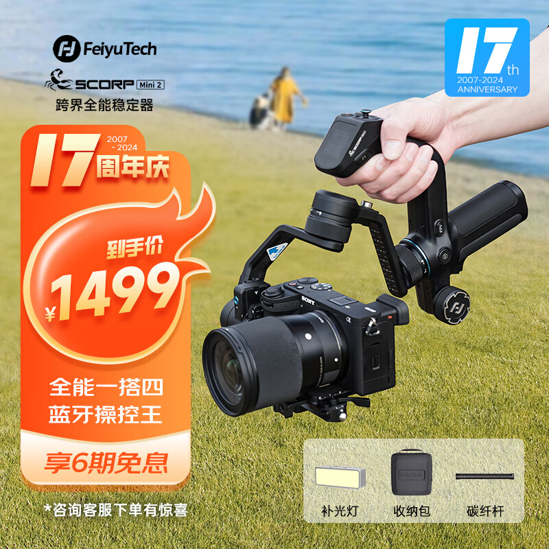 FeiyuTech 飞宇Scorp mini2微单单反相机稳定器三轴稳定器KIT 标配+收纳包+延长杆+补光灯价格:1499.00元!