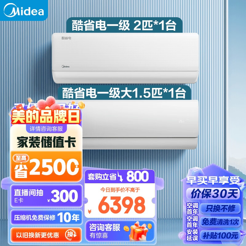美的(Midea)新一级能效 酷省电 一室一厅小户型精选套装(1.5匹+2匹)价格:7198.00元!