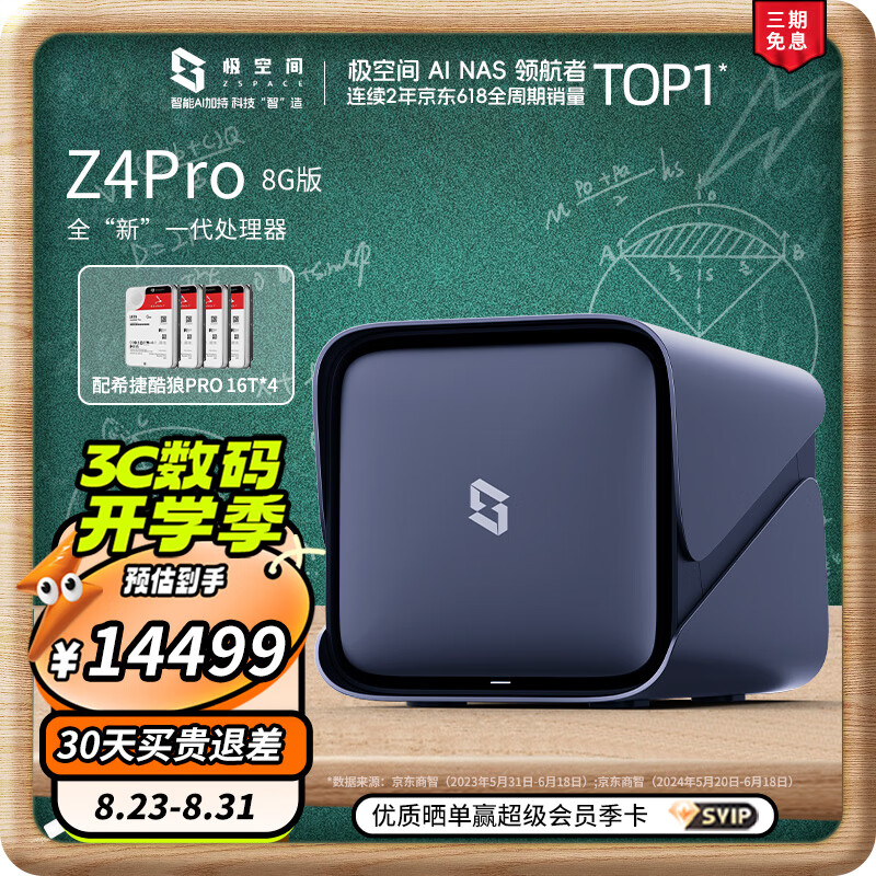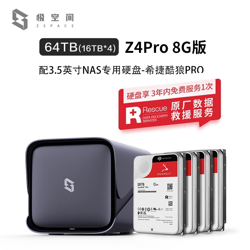 极空间私有云64TB Z4Pro 8G版四盘位Nas网络存储家庭个人云相册备份文件同步手机平板扩容价格:16799.00元!