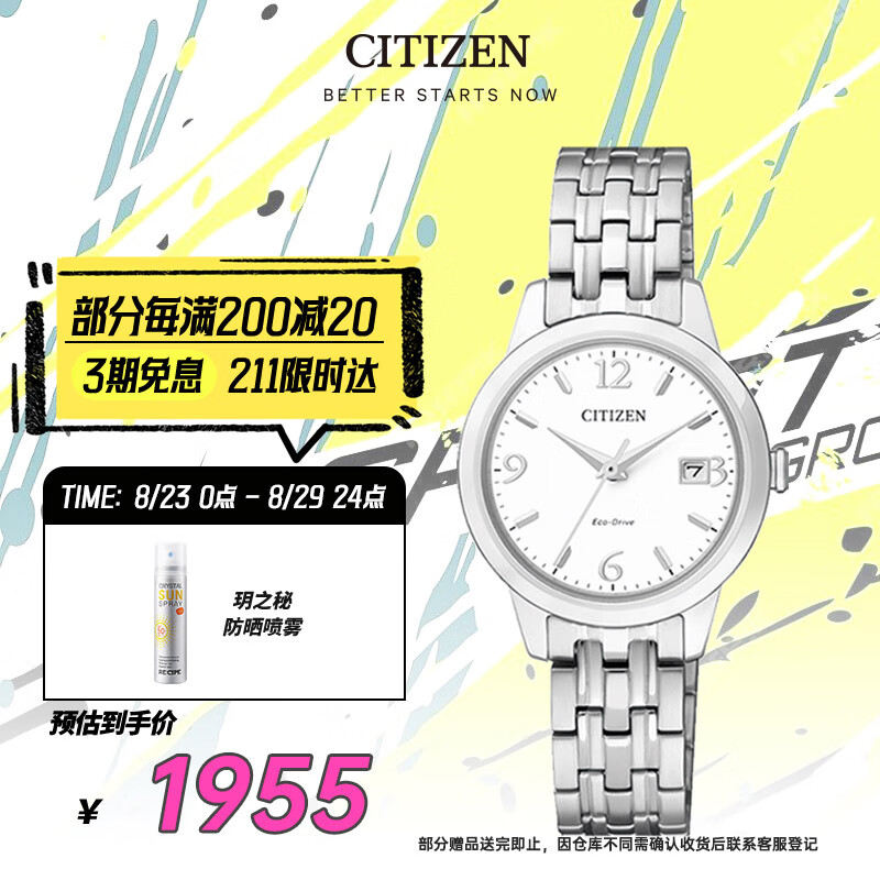 西铁城(CITIZEN)手表女日韩表光动能白盘日显钢带时尚商务送礼物EW2230-56A价格:2165.00元!