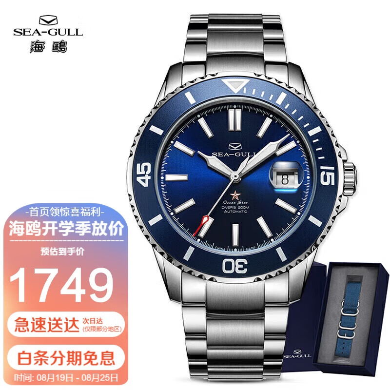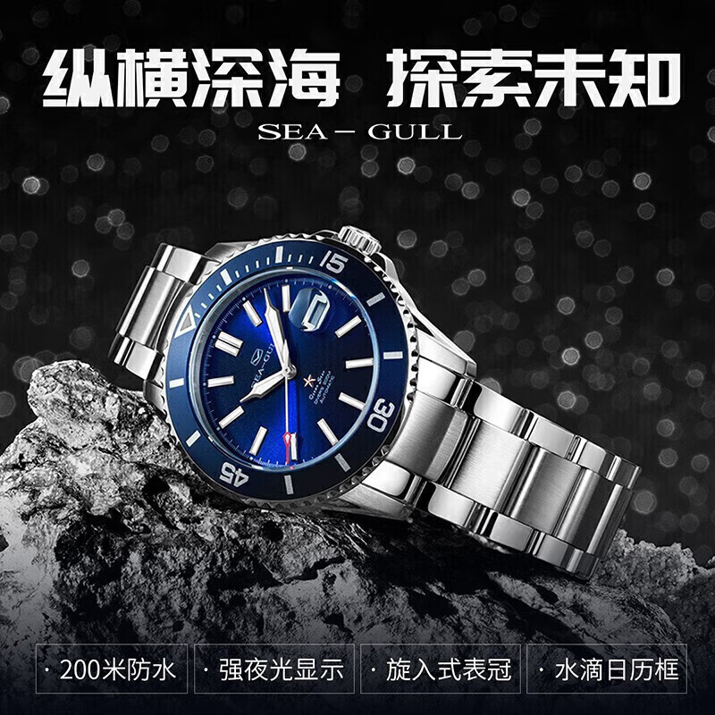 海鸥(SEAGULL)手表男士自动机械表 男表 海洋之星200米防水潜水腕表套装价格:1929.00元!