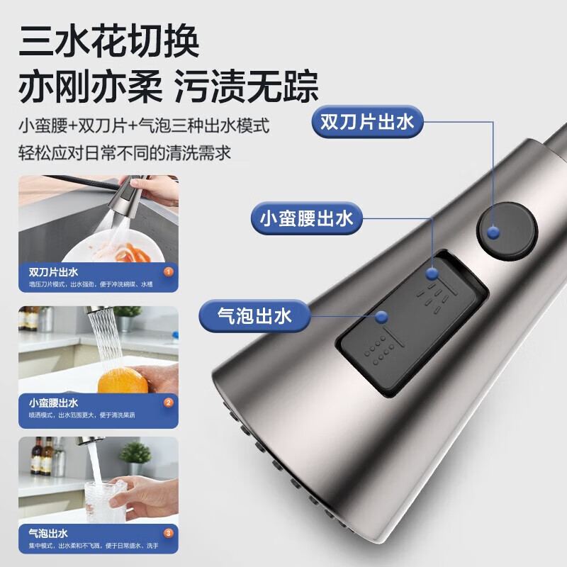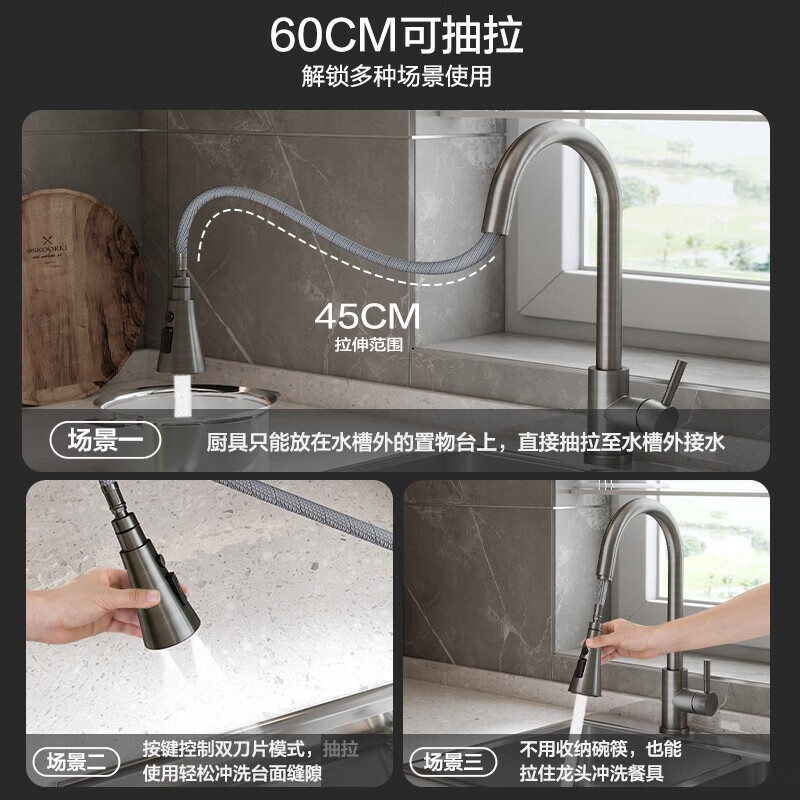 四季沐歌M-C200M-G抽拉厨房龙头(枪灰)优缺点评测评价: