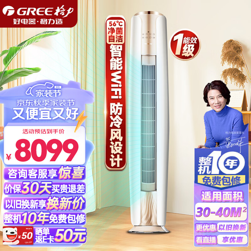格力(GREE)空调立式 3匹 云焕 1级能效变频 独立除湿 客厅空调柜机KFR-72LW/NhDe1BAj价格:8099.00元!