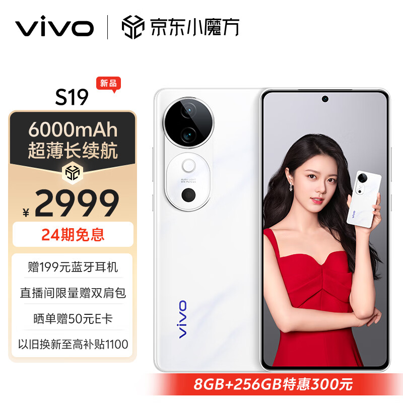vivo S19 12GB+512GB 烟雨青 6000mAh超薄长续航 影棚级柔光环 百万跑分第三代骁龙7 5G 拍照 手机价格:2999.00元!