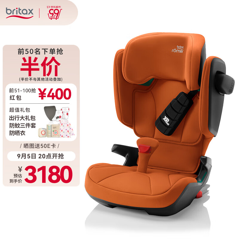 宝得适(BRITAX)儿童座椅德国进口3.5-12岁isofix接口 凯迪骑士isize 日落金价格:3380.00元!