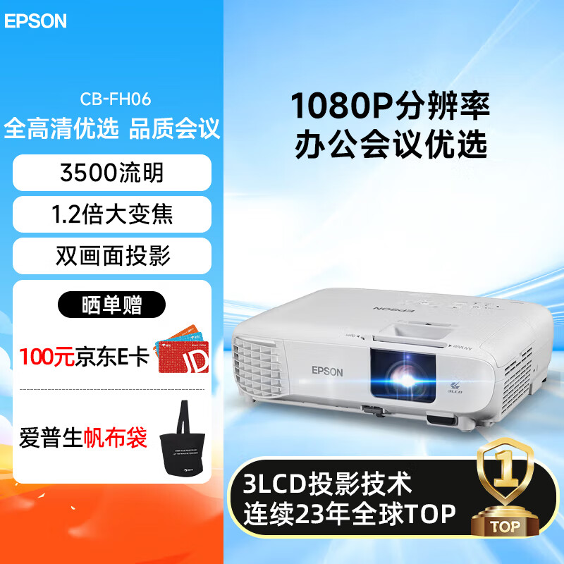 爱普生(EPSON)CB-FH06 投影仪 投影机办公 培训(1080P全高清 3500流明 支持侧投 )价格:5299.00元!