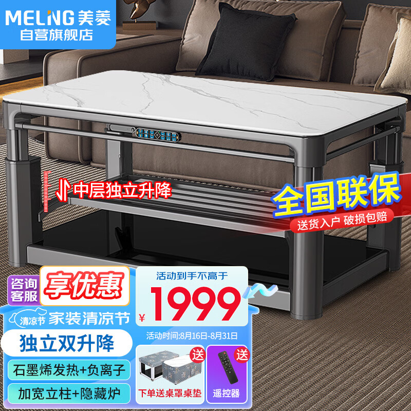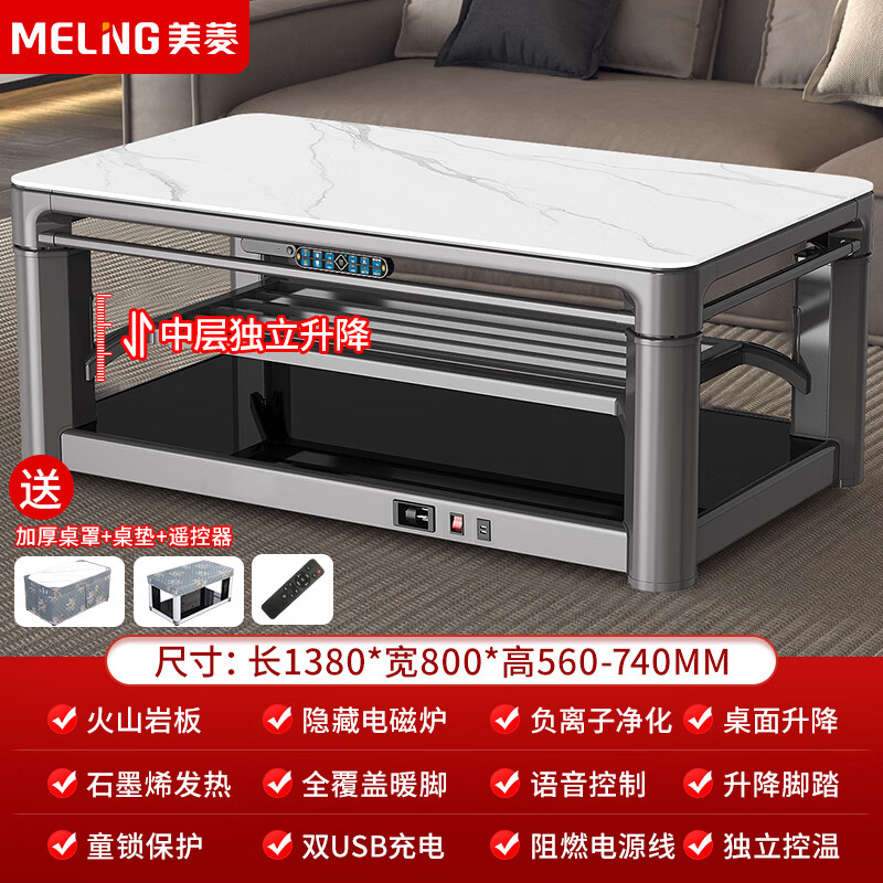 美菱电暖桌1.38米石墨烯发热多功能升降烤火茶几电暖炉家用餐桌取暖桌长方形烤火桌MDN-X1GZ-GD1E价格:2599.00元!