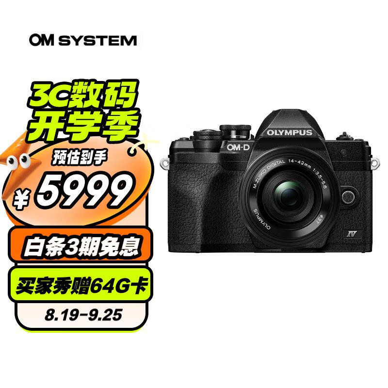 奥林巴斯(OLYMPUS)E-M10 MarkIV EM10四代 微单相机 数码相机 微单套机(14-42mm F3.5-5.6)2030万像素 黑价格:5999.00元!
