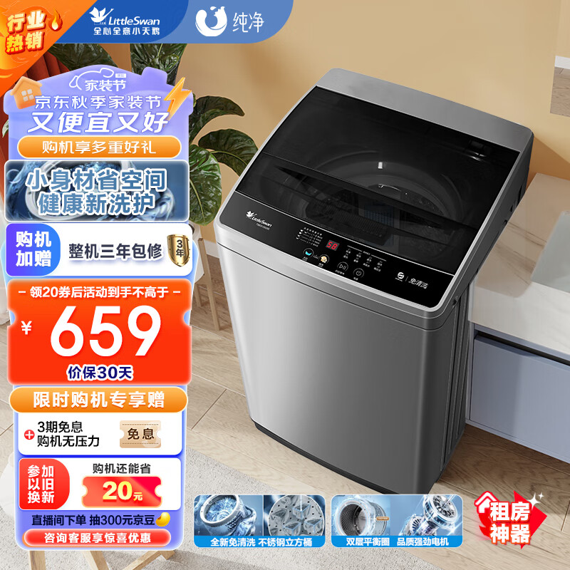 小天鹅(LittleSwan)波轮洗衣机全自动 6.5公斤 健康免清洗 品质电机 宿舍 租房神器 小型迷你 双层平衡圈 TB65V668E价格:659.00元!