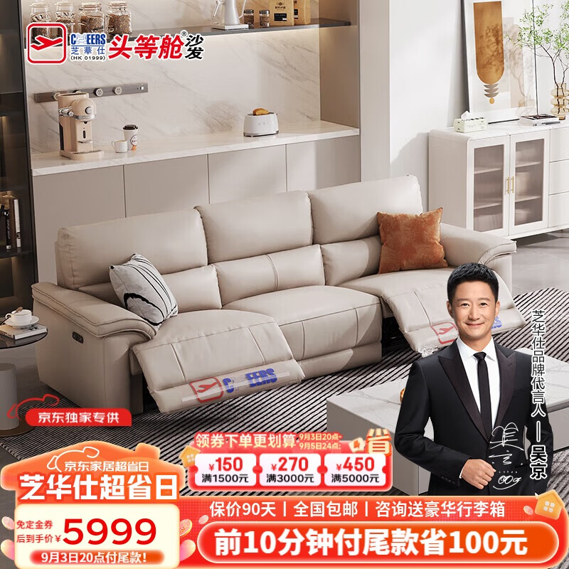芝华仕(CHEERS)头等舱零靠墙真皮沙发功能家用芝华士客厅家具30196 白三A价格:6549.00元!