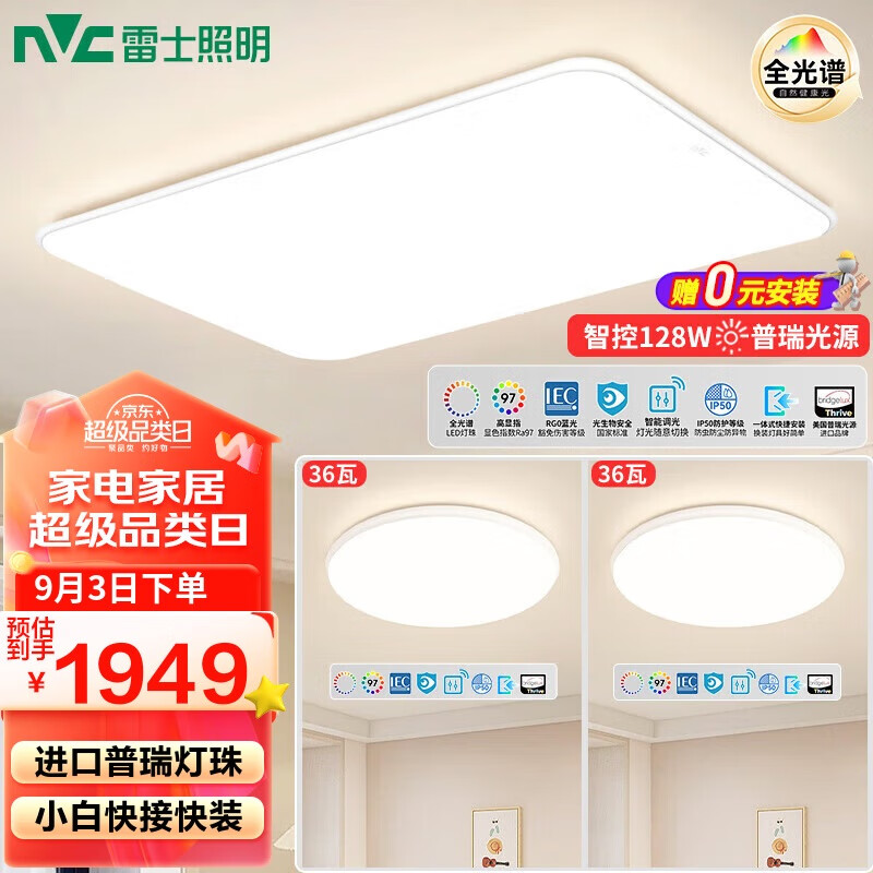 雷士(NVC)led吸顶灯客厅大灯奶油风语音智能全光谱护眼小白灯白雪D舒适光价格:2436.00元!