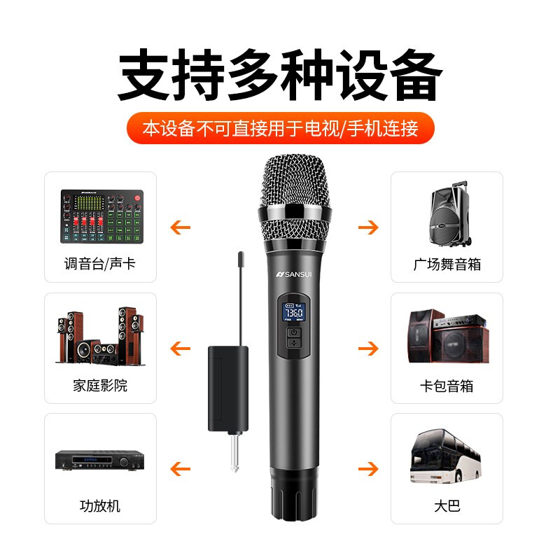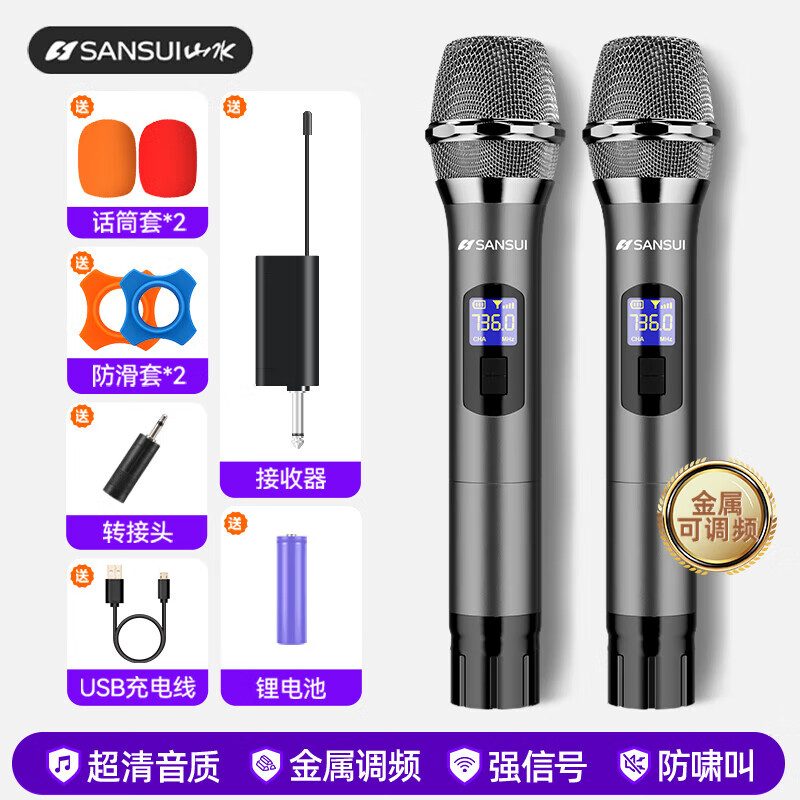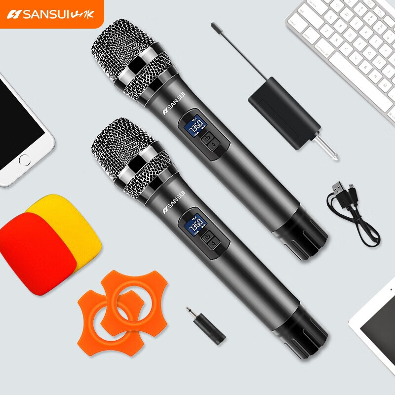 山水(SANSUI) 真U段无线调频麦克风金属话筒一拖二家庭KTV唱歌专业会议专用演讲户外音响价格:228.00元!