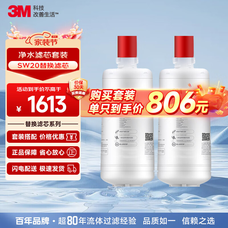 3M净水器家用净水机SW20原装替换滤芯两只装(本品*1+附件*1共计两只)价格:1898.00元!
