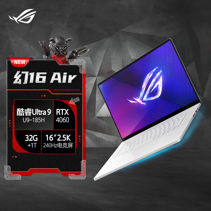 ROG幻16 Air 酷睿Ultra 9 16英寸设计师游戏本笔记本电脑(U9-185H 32G 1T RTX4060)铂月白 畅玩黑悟空价格:13969.00元!