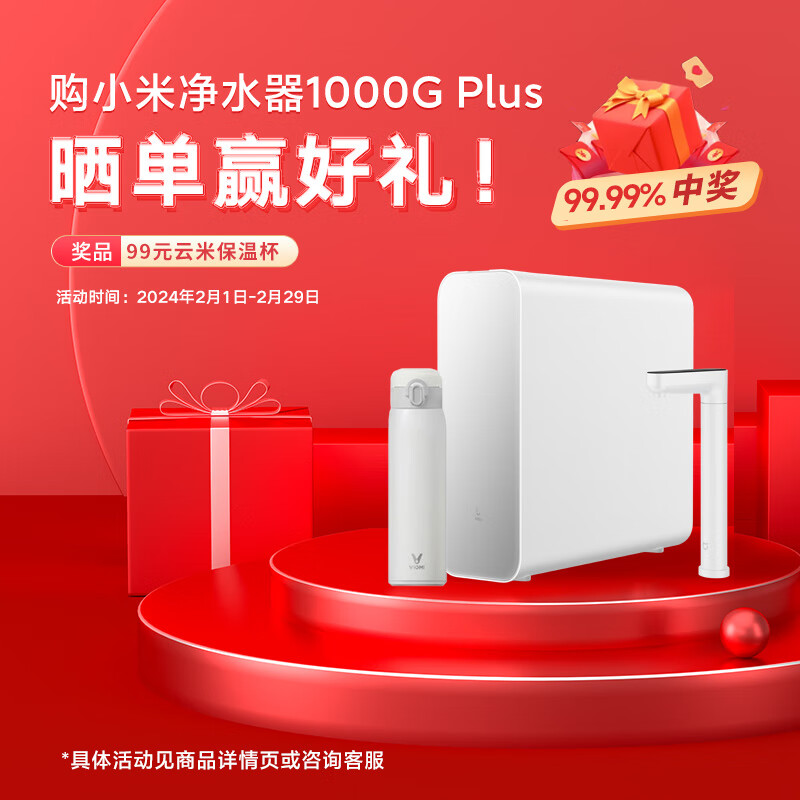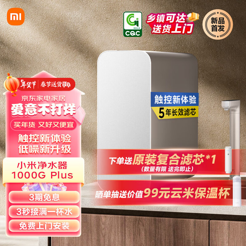 米家小米净水器家用净水机1000G Plus新鲜无陈水低噪省水 5年RO反渗透 厨下直饮净水器价格:1949.00元!