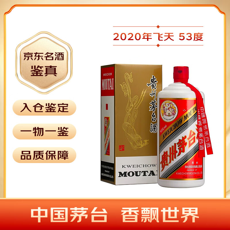 茅台(MOUTAI)2020年 飞天 酱香型白酒 53度 1000ml 单瓶装 【名酒鉴真】价格:5449.00元!