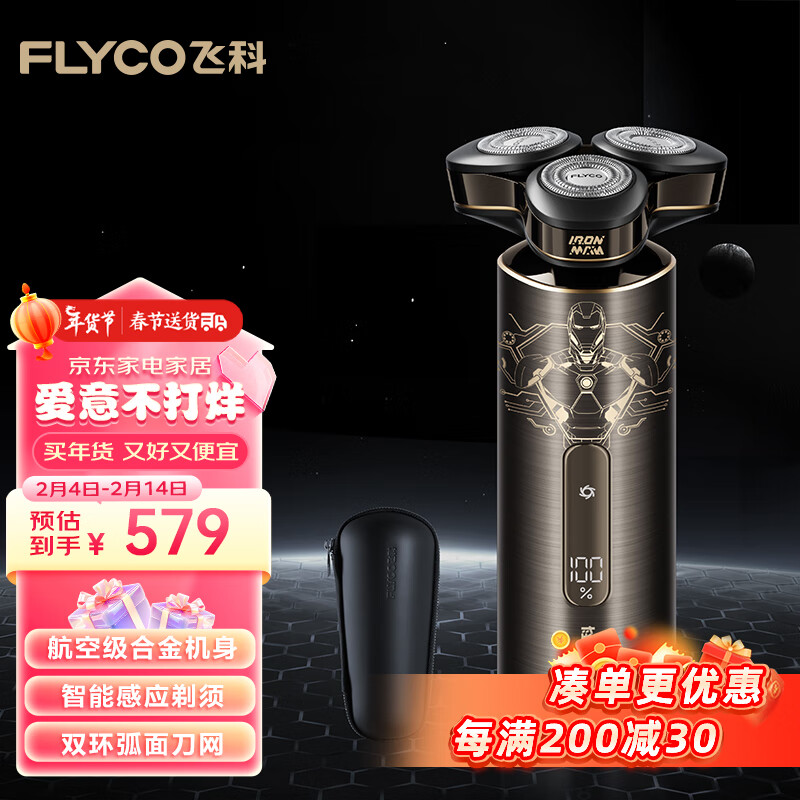 飞科(FLYCO)男士电动剃须刀FS989 刮胡须刀须刨 生日情人节日礼物送男友送老公-漫威钢铁侠IP联名款价格:899.00元!